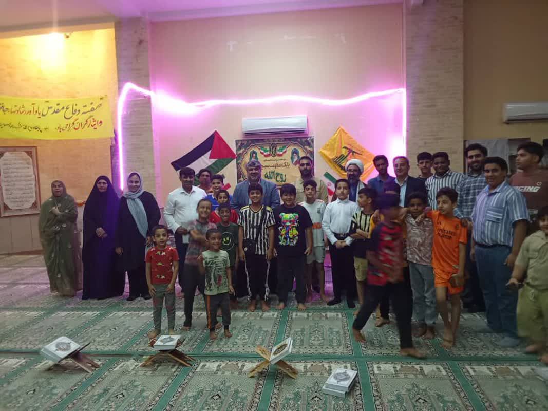 برگزاری محفل انس باقرآن به مناسبت هفته دفاع مقدس و گرامیداشت شهدای جنگ ۱۲ روزه به همت سازمان و پایگاه مقاومت بسیج روح الله شهرک راه آهن در محل مسجد النبی (ص) شهرک راه آهن با حضور رسول جهانداری رئیس سازمان فرهنگی اجتماعی ورزشی شهرداری بندرعباس، نصیری مدیرکل راه آهن هرمزگان ، احسان عاشوری فرمانده حوزه مقاومت بسیج شهید مدافع حرم عبدالحمید سالاری شهرک پیامبراعظم(ص)، حاج آقا پورنصیر فرمانده پایگاه، نوجوانان ، جوانان و خانواده ها