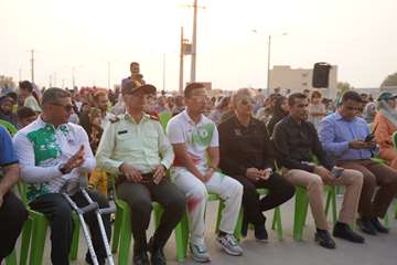 این مراسم با حضور جمعی از مسئولان و مدیران شهری از جمله مهدی نوبانی شهردار بندرعباس، احمد پویافر فرماندار بندرعباس، فریده عامری عضو شورای اسلامی شهر بندرعباس، حمید کمالی فرمانده سپاه ناحیه بندرعباس، امین رئیسی رئیس اداره ورزش بندرعباس، مسلم عاشوری و فرامرز عیانی معاونان سازمان همراه بود.