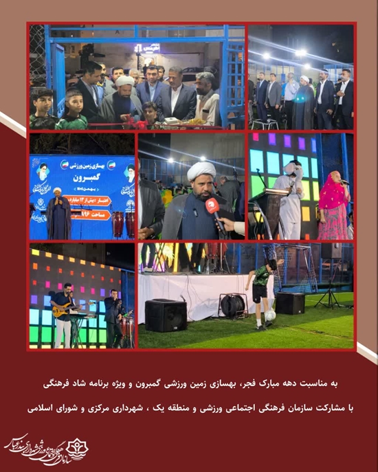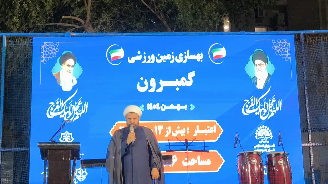 به مناسبت دهه مبارک فجر بهسازی زمین ورزشی گمبرون و ویژه برنامه شاد فرهنگی با مشارکت سازمان فرهنگی اجتماعی ورزشی ،منطقه یک ،شهرداری مرکزی و شورای اسلامی