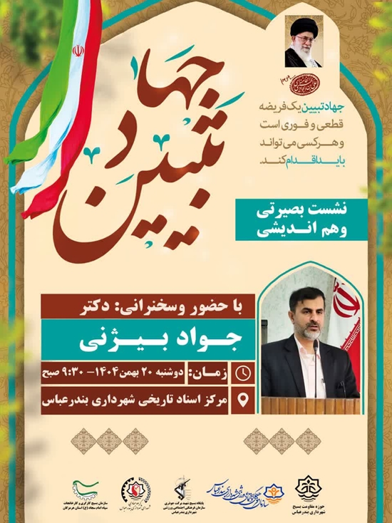 نشست بصیرتی و هم اندیشی با حضور و سخنرانی دکتر جواد بیژنی  زمان دوشنبه ۲۰ بهمن ۱۴۰۴_ ۹:۳۰ صبح مرکز اسناد تاریخی شهرداری بندرعباس