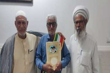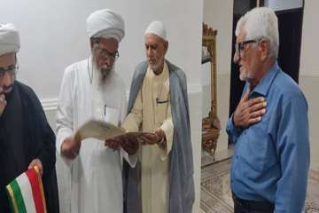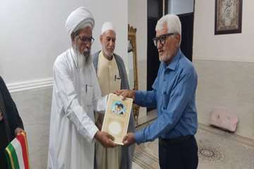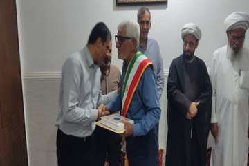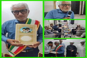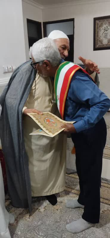 در این دیدار با اهدا لوح سپاس و حمایل مزین به پرچم مقدس جمهوری اسلامی ایران از حاج اسحق علی نسب تقدیر و تکریم شد .