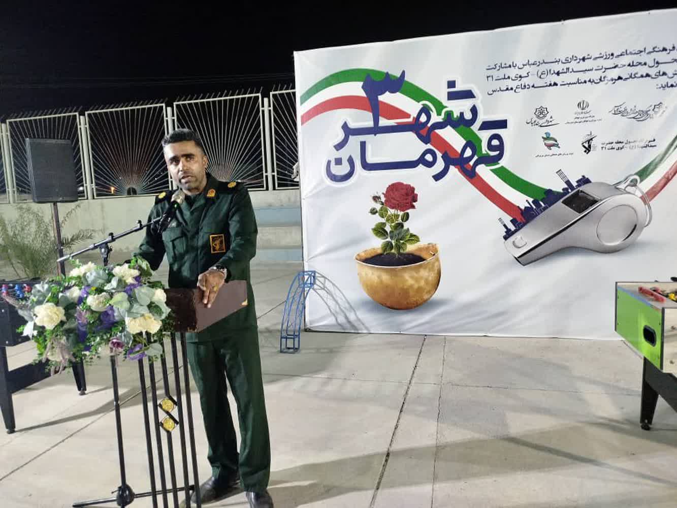 رسول جهانداری ضمن عرض تبریک به مناسبت هفته دفاع مقدس گفت: مسابقات قهرمان شهر ۳ به مناسبت هفته دفاع مقدس در محله کوی ملت با حضور پرشور مردم برگزار شد و این مسابقه در محلات دیگر نیز برگزار خواهیم کرد.