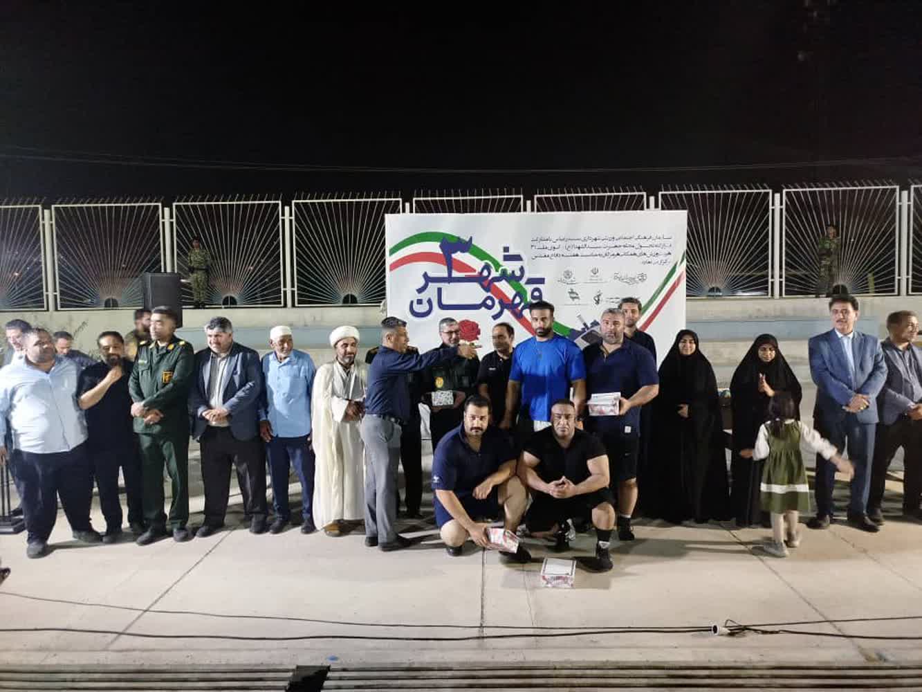 به گزارش روابط عمومی سازمان فرهنگی، اجتماعی ورزشی شهرداری بندرعباس؛ با حضور سردار امیری جانشین سپاه امام سجاد (ع)هرمزگان،سرهنگ کمالی فرمانده ناحیه مقاومت بسیج سپاه بندرعباس، یعقوب دبیری نژاد و فریده عامری دو عضوشورای اسلامی شهر، محمد حسینی دبیرهیئت ورزشهمگانی استان و مسئولان و مدیران سازمان فرهنگی اجتماعی ورزشی شهرداری بندرعباس و هیئت ورزشهای همگانی هرمزگان، و با حضور مردم بسیار خونگرم محله کوی ملت مسابقات قهرمان شهر در زمین ورزشی واقع در محله کوی ملت برگزار گردید.