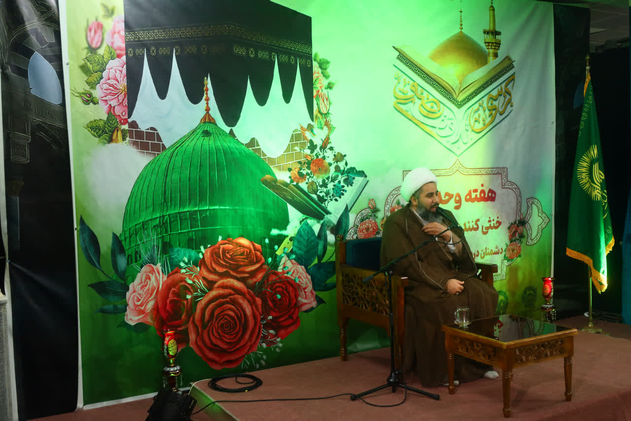 کرسی تلاوت قرآن به مناسبت هفته وحدت با مشارکت سازمان فرهنگی اجتماعی ورزشی شهرداری بندرعباس و‌ مرکز آستان قدس کانون تخصصی قرآن کریم در استان هرمزگان با حضور امام جمعه اهل سنت و‌ همچنین قاریان برجسته استان در حسینیه بهشت برگزار شد