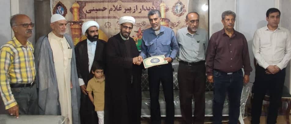 بمناسبت هفته تربیت بدنی دیدار از پیرغلام و خادم اهلبیت و ورزشکار و مربی فوتبال کربلایی ابوالقاسم الماسی بندری معلم بازنشسته آموزش و پرورش ، مداح و روضه خوان اهلبیت در مورخه دوشنبه ۲۸مهرماه۱۴۰۴ با حضور حجه الاسلام موسی حیدری معاونت فرهنگی اوقاف و امور خیریه و حجه السلام احمدبازآمد مشاور انجمن و حاج طاهرقریشی رئیس هیئت مدیره انجمن تعزیه خوانی و حاج علی زامیاد پیرغلام ویژه هرمزگان و دکتر محمودرجبی کارشناس ارشد اداره تبلیغات اسلامی شهرستان بندرعباس و ابراهیم افسایی رئیس شورای تعزیه خوانی دهستان سیاهو و هادی عرب موسس انجمن تعزیه خوانی هرمزگان و اعضا" انجمن تعزیه خوانی و شورای هئیات مذهبی شهرستان بندرعباس از سالها خدمات وی در مسجدابوالفضل پل خواجو و حسینیه امام جعفرصادق علیه السلام محله الشهدا و روضه خوانی در شبهای دوشنبه و جمعه شهادتهاو مولودیها حضور فعال داشته اند .