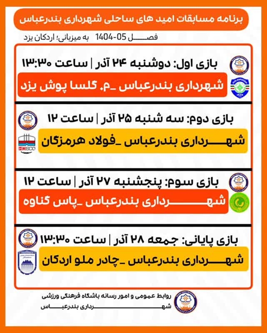 برنامه دیدارهای امیدهای ساحلی نارنجی‌پوشان:
