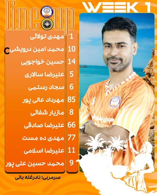 ترکیب نارنجی پوشان شهرداری بندرعباس برابر سپاهان ب اصفهان از سوی نادر غله بانی اعلام شد.