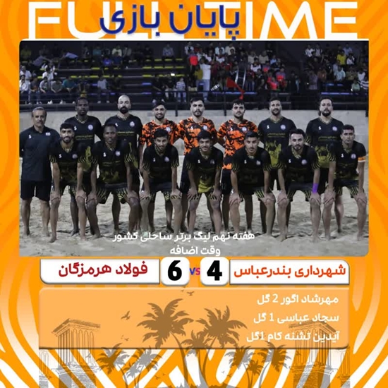 به گزارش روابط عمومی باشگاه فرهنگی ورزشی شهرداری بندرعباس: در چارچوب هفته نهم لیگ برتر فوتبال ساحلی کشور، دیدار حساس و پرهیجان بین دو تیم شهرداری بندرعباس و فولاد هرمزگان عصر امروز در ورزشگاه ساحلی غدیر بندرعباس برگزار شد.