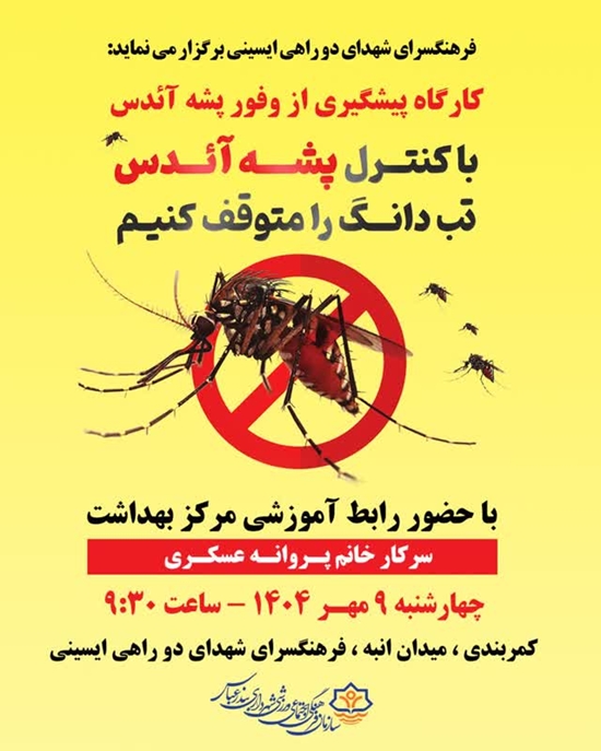فرهنگسرای شهدای دوراهی ایسینی برگزار می نماید:کارگاه پیشگیری از وفور پشه آئدس