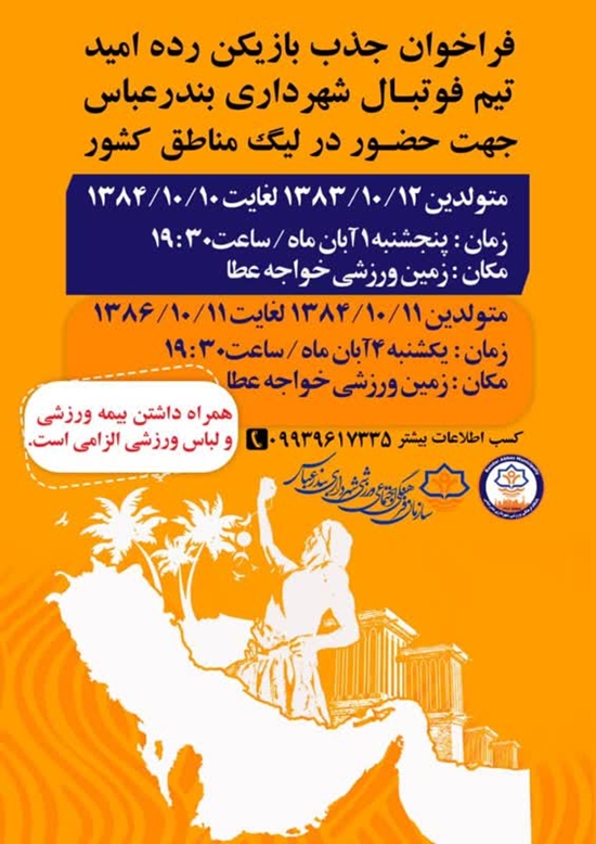 فراخوان جذب بازیکن رده امید تیم فوتبال شهرداری بندرعباس جهت حضور در لیگ مناطق کشور