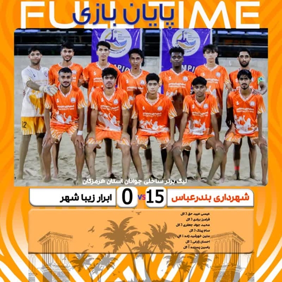 به گزارش روابط عمومی باشگاه فرهنگی ورزشی شهرداری بندرعباس؛ در روز دوم لیگ برتر ساحلی جوانان هرمزگان و در یادواره هفته وحدت، تیم جوانان شهرداری بندرعباس در ورزشگاه ساحلی غدیر بندرعباس مقابل ابرار زیبا شهر یک نمایش تماشایی داشت و با نتیجه ۱۵–۰حریف خود را شکست داد.